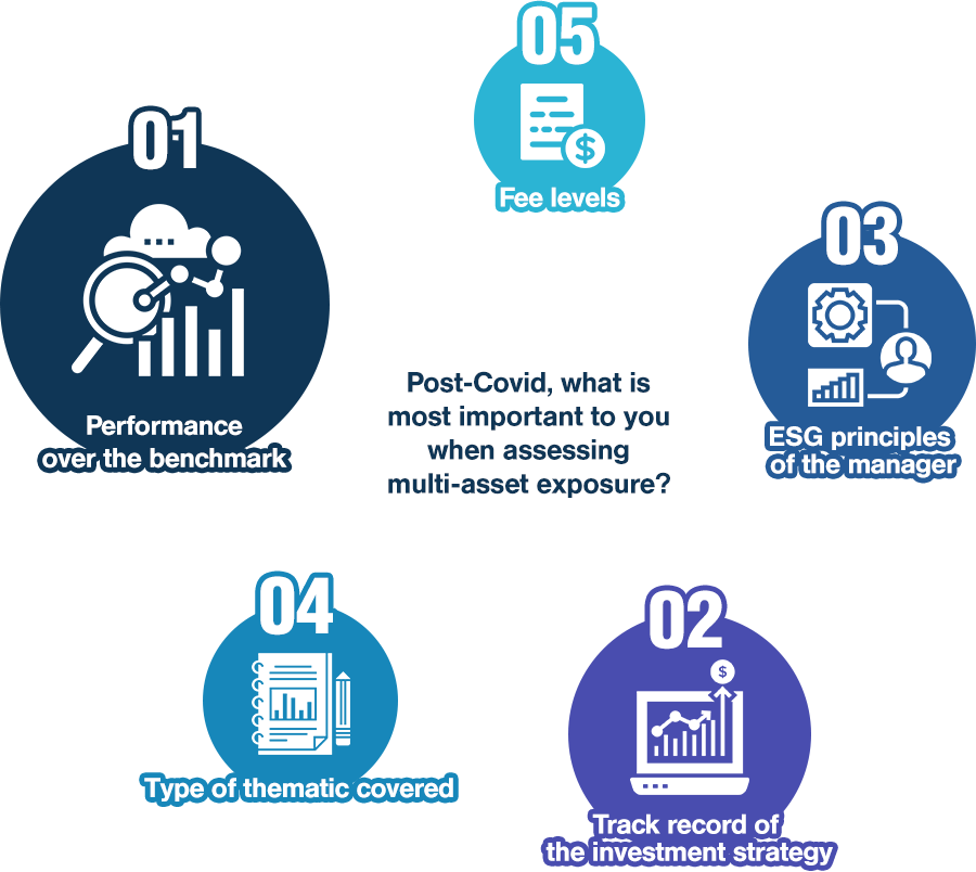 - Post-Covid, performance over the benchmark is the most important consideration when assessing multi-asset exposure.